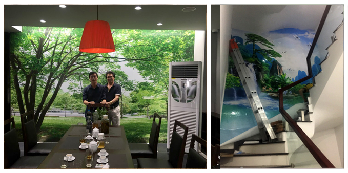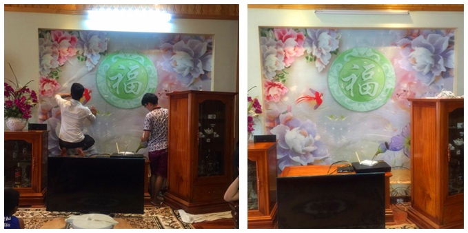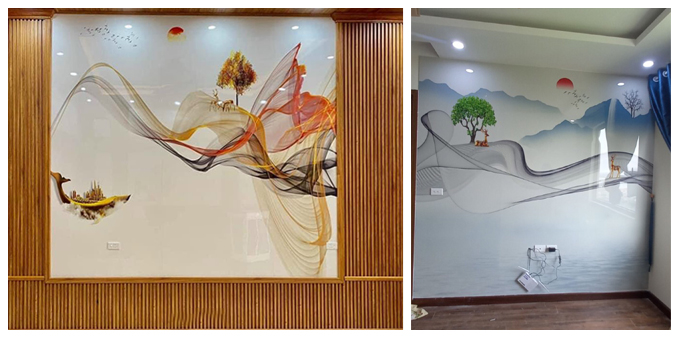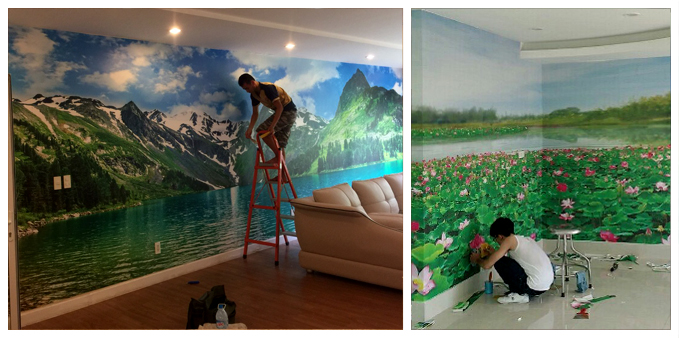 Tranh dán tường 3D chất liệu vải lụa với khổ lớn lên tới hàng chục mét vuông